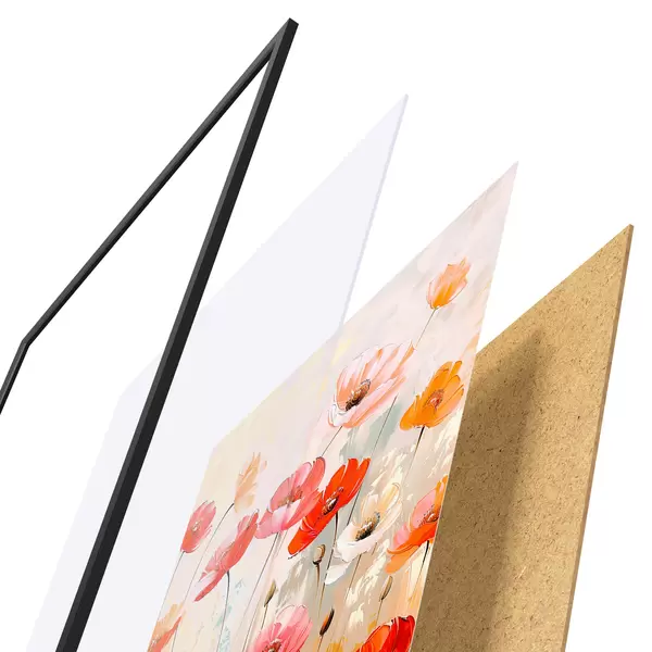 Plakāts sastāv no rāmja, pleksstikla, iespiestā attēla un skaidu plātnes pamatnes. Plakātu var uzreiz piekarināt pie sienas, pateicoties aizmugurē esošajiem stiprinājumiem.