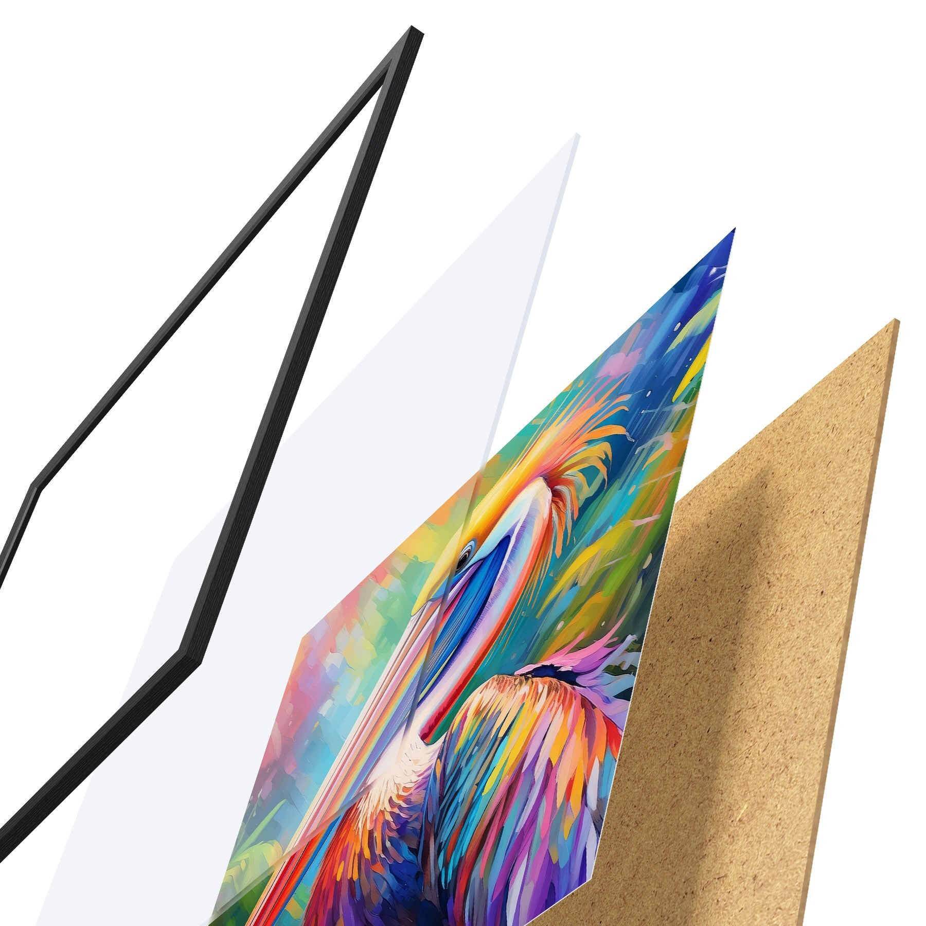 Plakāts sastāv no rāmja, pleksstikla, iespiestā attēla un skaidu plātnes pamatnes. Plakātu var uzreiz piekarināt pie sienas, pateicoties aizmugurē esošajiem stiprinājumiem.
