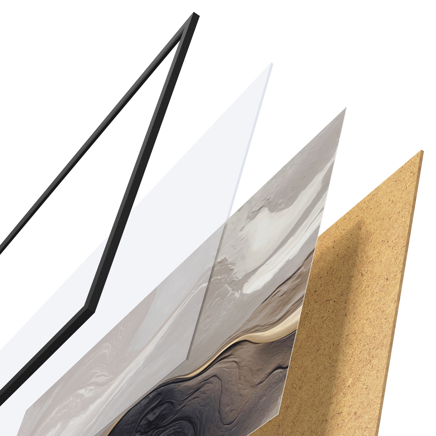 Plakāts sastāv no rāmja, pleksstikla, iespiestā attēla un skaidu plātnes pamatnes. Plakātu var uzreiz piekarināt pie sienas, pateicoties aizmugurē esošajiem stiprinājumiem.