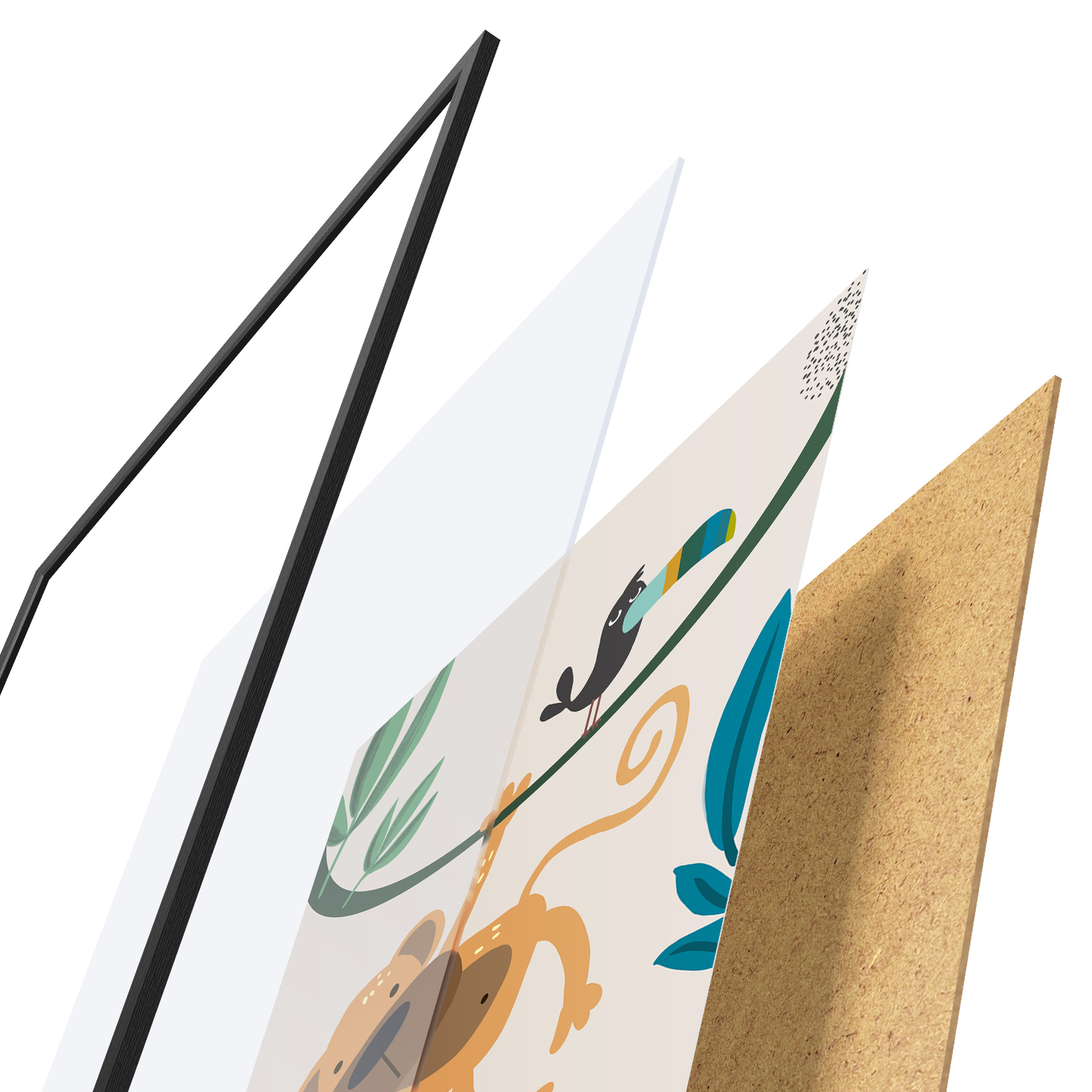 Plakāts sastāv no rāmja, pleksstikla, iespiestā attēla un skaidu plātnes pamatnes. Plakātu var uzreiz piekarināt pie sienas, pateicoties aizmugurē esošajiem stiprinājumiem.