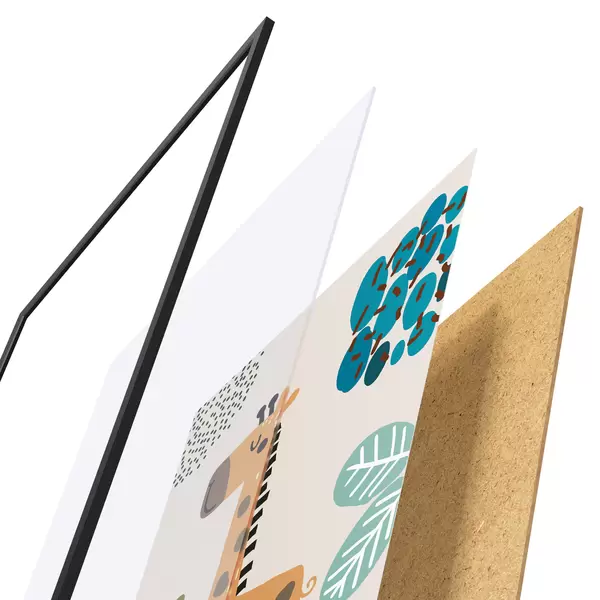 Plakāts sastāv no rāmja, pleksstikla, iespiestā attēla un skaidu plātnes pamatnes. Plakātu var uzreiz piekarināt pie sienas, pateicoties aizmugurē esošajiem stiprinājumiem.