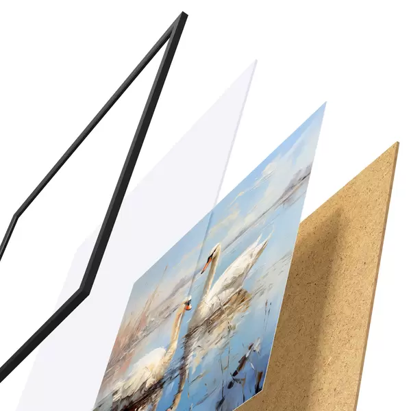 Plakāts sastāv no rāmja, pleksstikla, iespiestā attēla un skaidu plātnes pamatnes. Plakātu var uzreiz piekarināt pie sienas, pateicoties aizmugurē esošajiem stiprinājumiem.