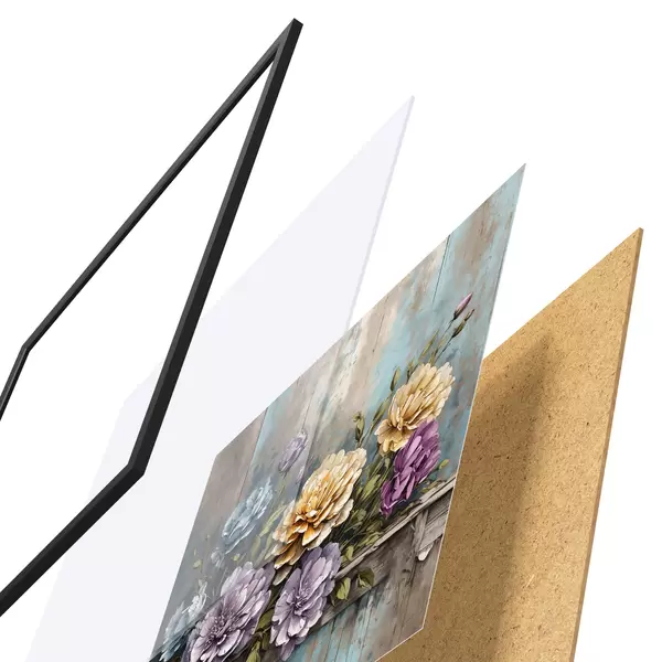 Plakāts sastāv no rāmja, pleksstikla, iespiestā attēla un skaidu plātnes pamatnes. Plakātu var uzreiz piekarināt pie sienas, pateicoties aizmugurē esošajiem stiprinājumiem.