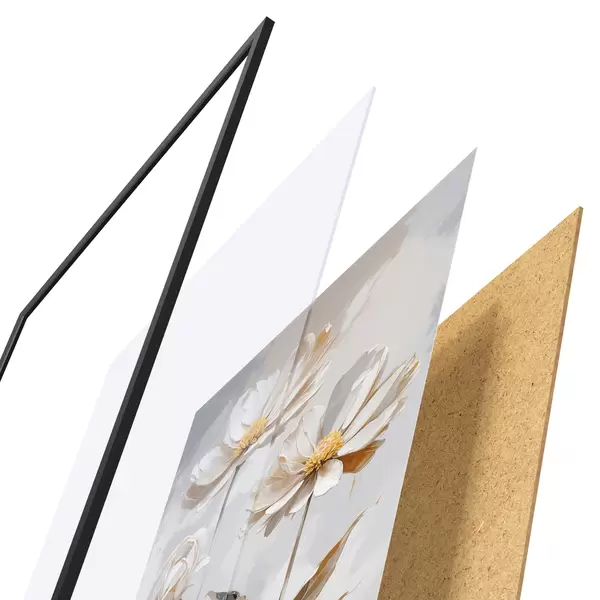 Plakāts sastāv no rāmja, pleksstikla, iespiestā attēla un skaidu plātnes pamatnes. Plakātu var uzreiz piekarināt pie sienas, pateicoties aizmugurē esošajiem stiprinājumiem.