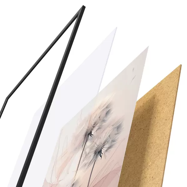 Plakāts sastāv no rāmja, pleksstikla, iespiestā attēla un skaidu plātnes pamatnes. Plakātu var uzreiz piekarināt pie sienas, pateicoties aizmugurē esošajiem stiprinājumiem.