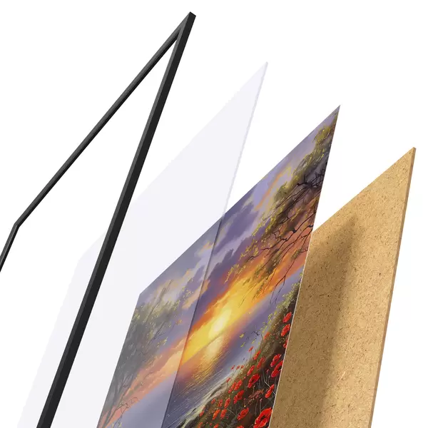 Plakāts sastāv no rāmja, pleksstikla, iespiestā attēla un skaidu plātnes pamatnes. Plakātu var uzreiz piekarināt pie sienas, pateicoties aizmugurē esošajiem stiprinājumiem.