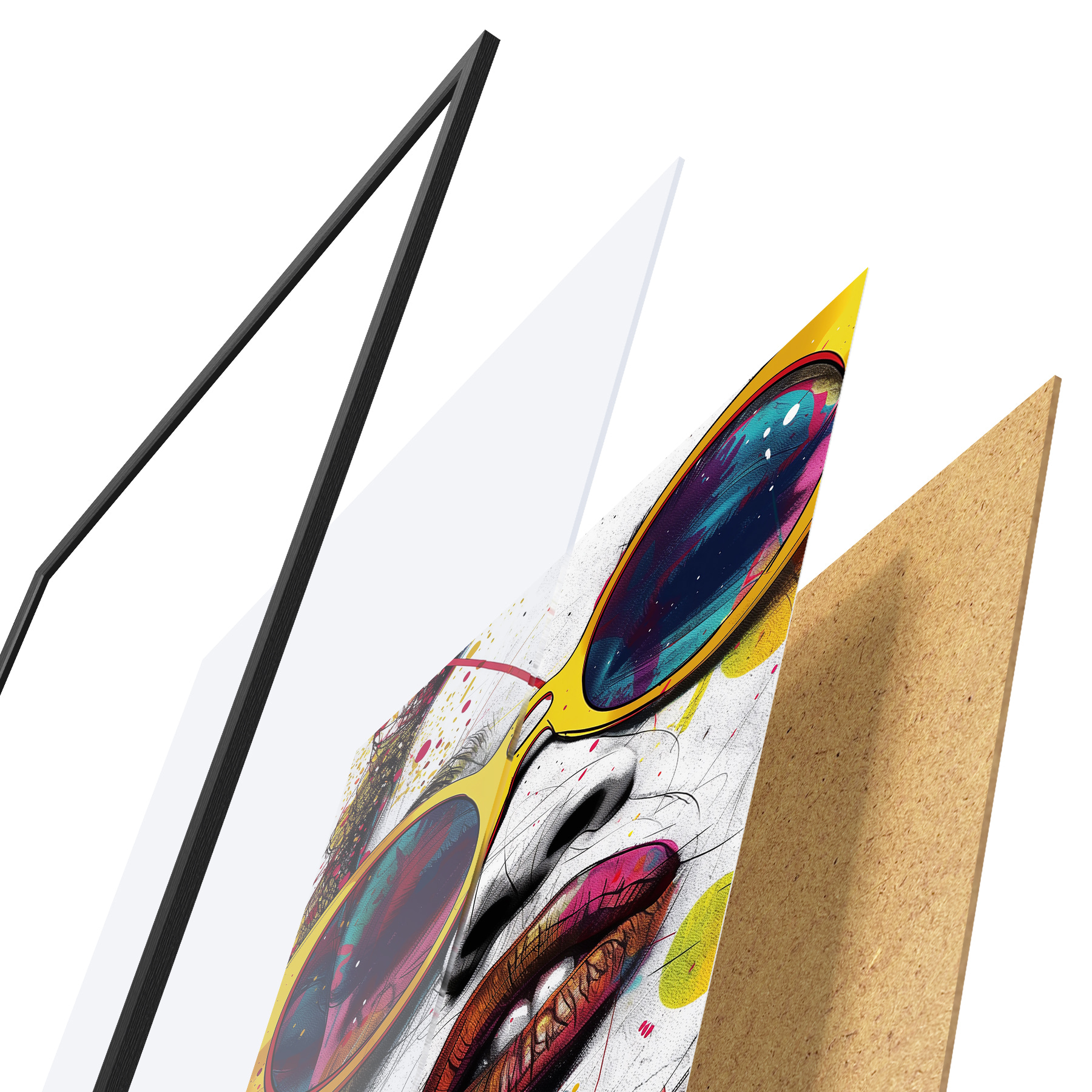Plakāts sastāv no rāmja, pleksstikla, iespiestā attēla un skaidu plātnes pamatnes. Plakātu var uzreiz piekarināt pie sienas, pateicoties aizmugurē esošajiem stiprinājumiem.
