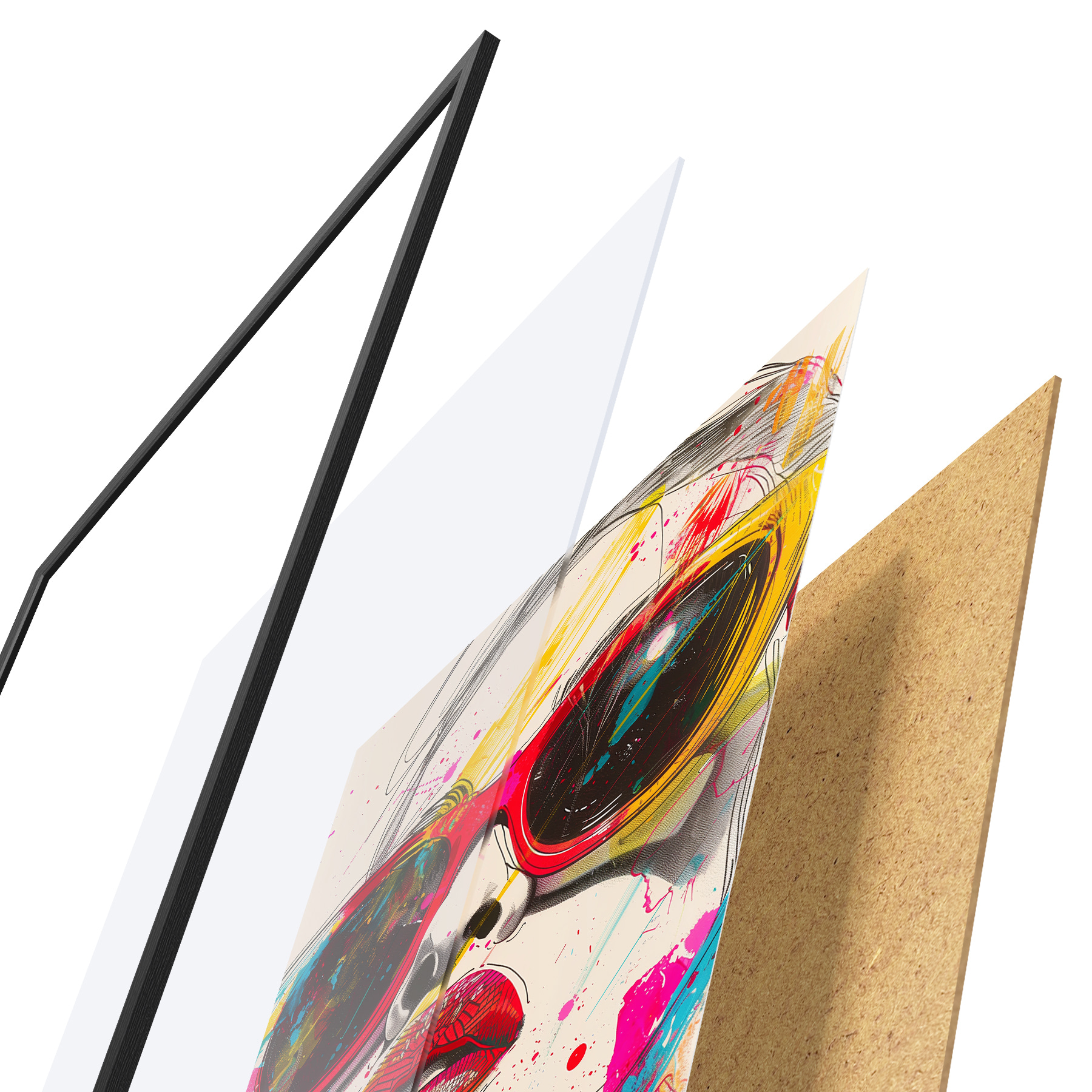 Plakāts sastāv no rāmja, pleksstikla, iespiestā attēla un skaidu plātnes pamatnes. Plakātu var uzreiz piekarināt pie sienas, pateicoties aizmugurē esošajiem stiprinājumiem.