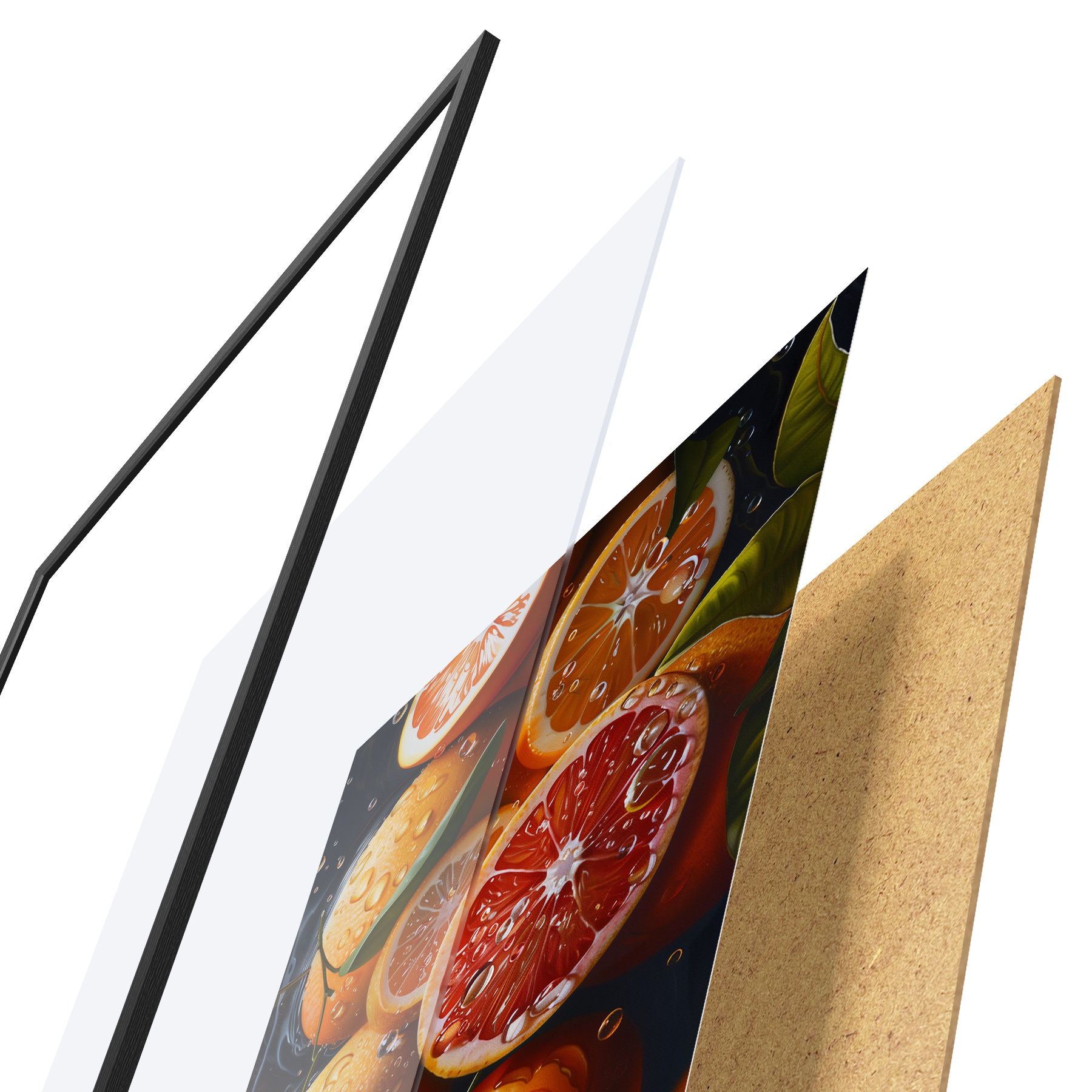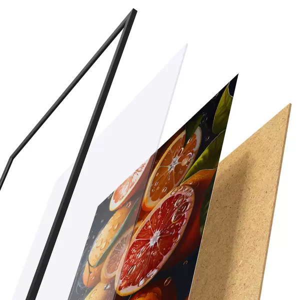 Plakāts sastāv no rāmja, pleksstikla, iespiestā attēla un skaidu plātnes pamatnes. Plakātu var uzreiz piekarināt pie sienas, pateicoties aizmugurē esošajiem stiprinājumiem.
