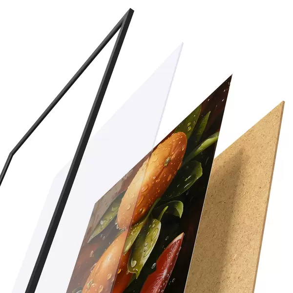 Plakāts sastāv no rāmja, pleksstikla, iespiestā attēla un skaidu plātnes pamatnes. Plakātu var uzreiz piekarināt pie sienas, pateicoties aizmugurē esošajiem stiprinājumiem.