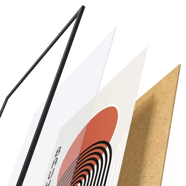 Plakāts sastāv no rāmja, pleksstikla, iespiestā attēla un skaidu plātnes pamatnes. Plakātu var uzreiz piekarināt pie sienas, pateicoties aizmugurē esošajiem stiprinājumiem.