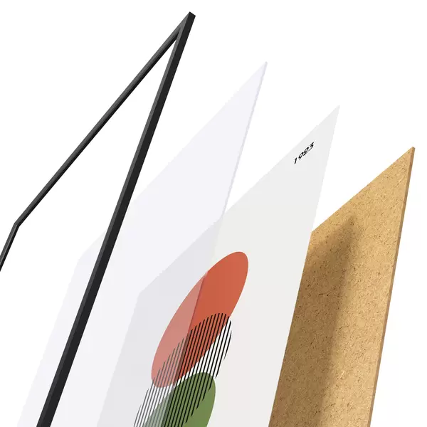 Plakāts sastāv no rāmja, pleksstikla, iespiestā attēla un skaidu plātnes pamatnes. Plakātu var uzreiz piekarināt pie sienas, pateicoties aizmugurē esošajiem stiprinājumiem.