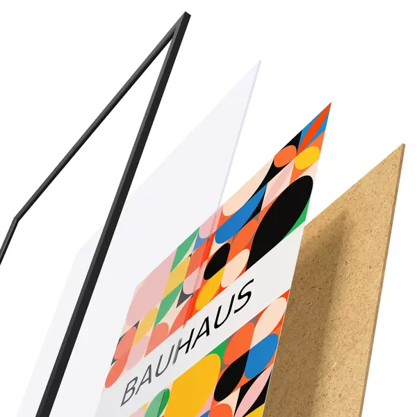 Plakāts sastāv no rāmja, pleksstikla, iespiestā attēla un skaidu plātnes pamatnes. Plakātu var uzreiz piekarināt pie sienas, pateicoties aizmugurē esošajiem stiprinājumiem.