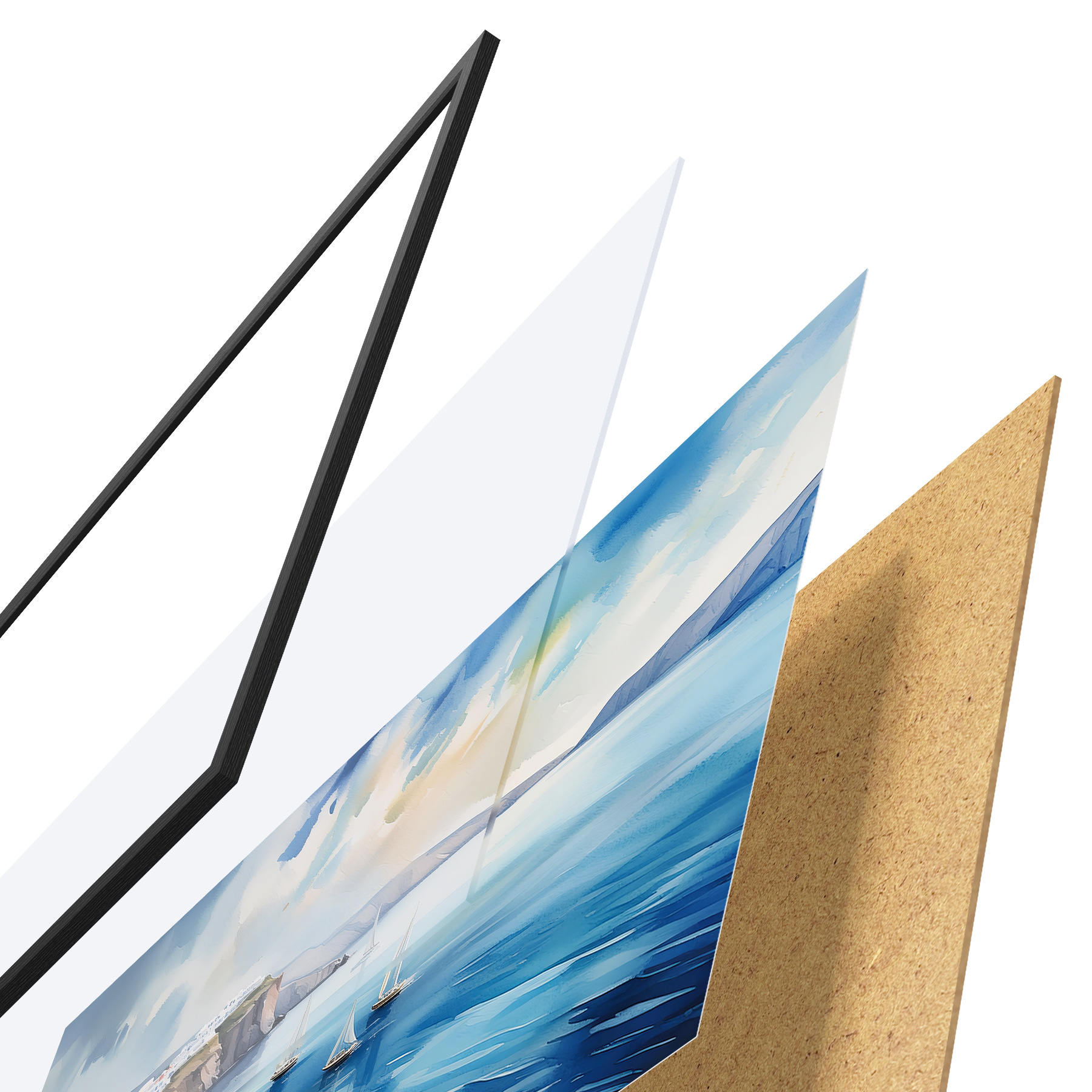 Plakāts sastāv no rāmja, pleksstikla, iespiestā attēla un skaidu plātnes pamatnes. Plakātu var uzreiz piekarināt pie sienas, pateicoties aizmugurē esošajiem stiprinājumiem.