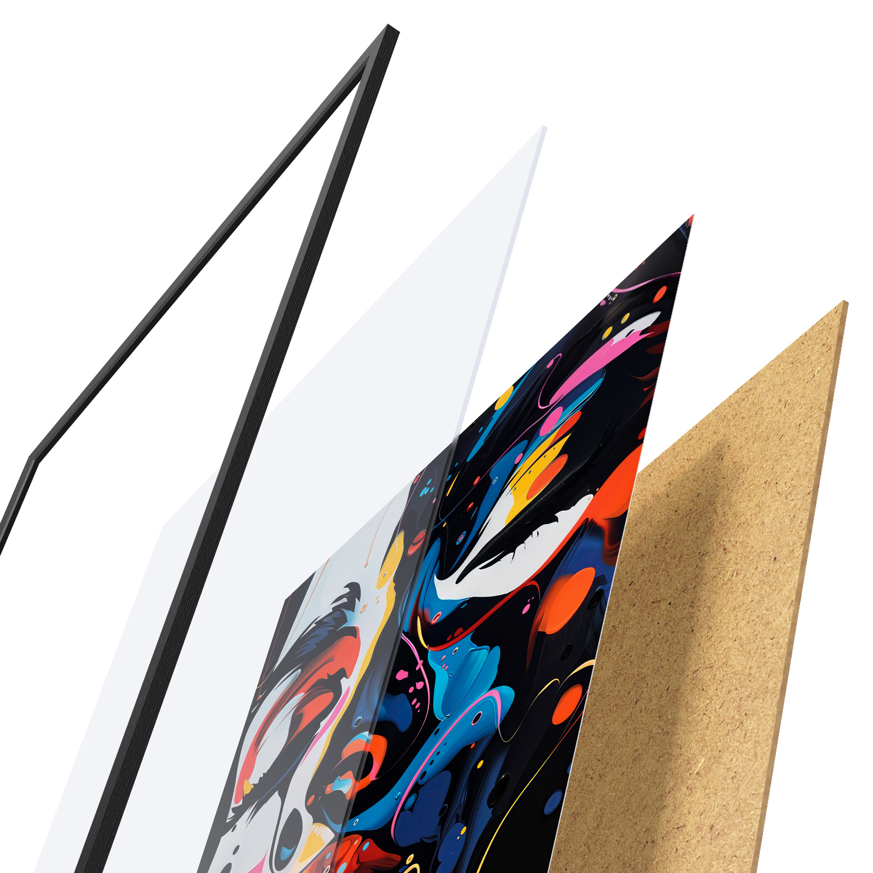 Plakāts sastāv no rāmja, pleksstikla, iespiestā attēla un skaidu plātnes pamatnes. Plakātu var uzreiz piekarināt pie sienas, pateicoties aizmugurē esošajiem stiprinājumiem.