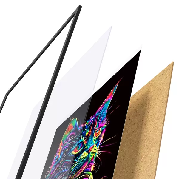 Plakāts sastāv no rāmja, pleksstikla, iespiestā attēla un skaidu plātnes pamatnes. Plakātu var uzreiz piekarināt pie sienas, pateicoties aizmugurē esošajiem stiprinājumiem.