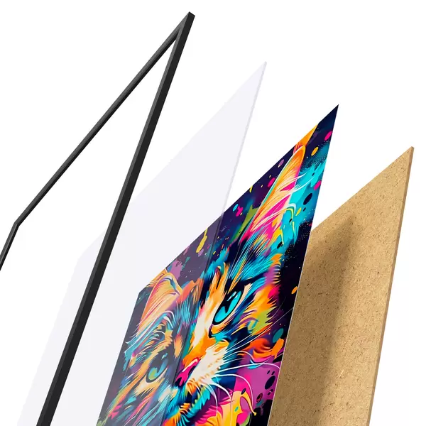Plakāts sastāv no rāmja, pleksstikla, iespiestā attēla un skaidu plātnes pamatnes. Plakātu var uzreiz piekarināt pie sienas, pateicoties aizmugurē esošajiem stiprinājumiem.
