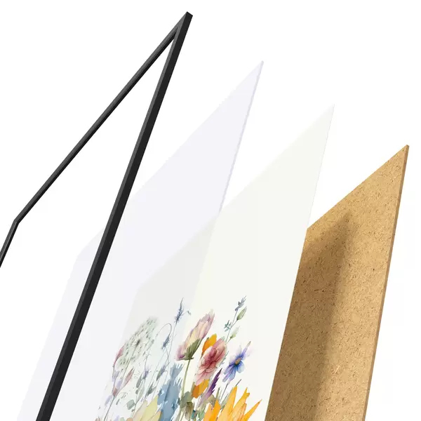 Plakāts sastāv no rāmja, pleksstikla, iespiestā attēla un skaidu plātnes pamatnes. Plakātu var uzreiz piekarināt pie sienas, pateicoties aizmugurē esošajiem stiprinājumiem.
