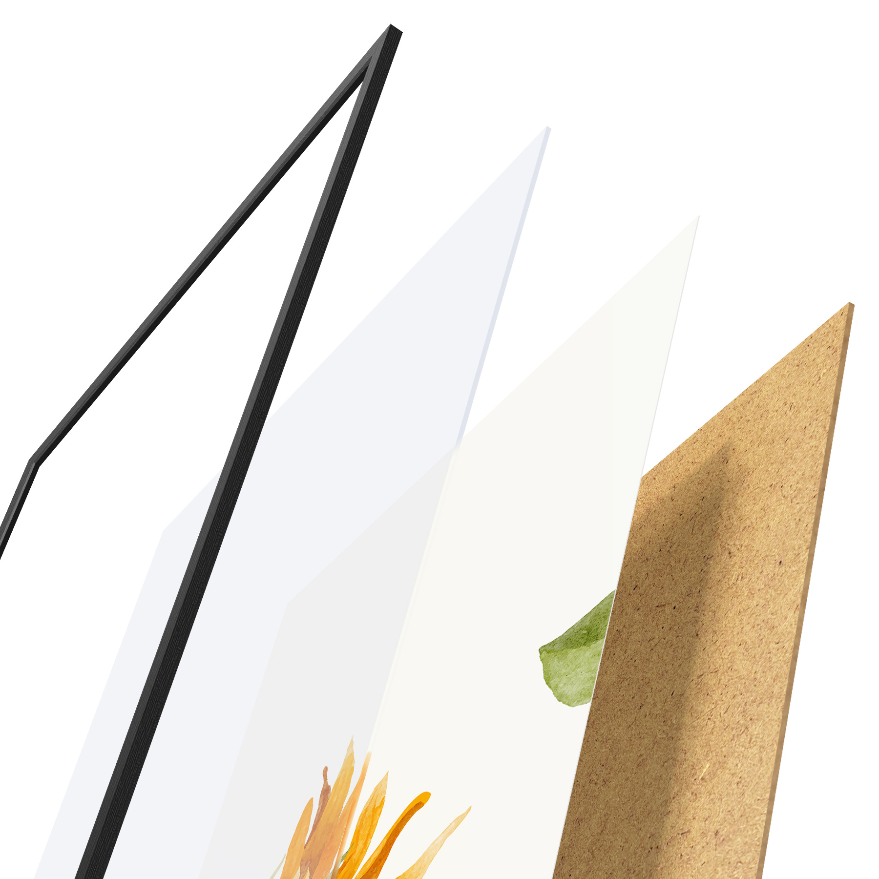 Plakāts sastāv no rāmja, pleksstikla, iespiestā attēla un skaidu plātnes pamatnes. Plakātu var uzreiz piekarināt pie sienas, pateicoties aizmugurē esošajiem stiprinājumiem.