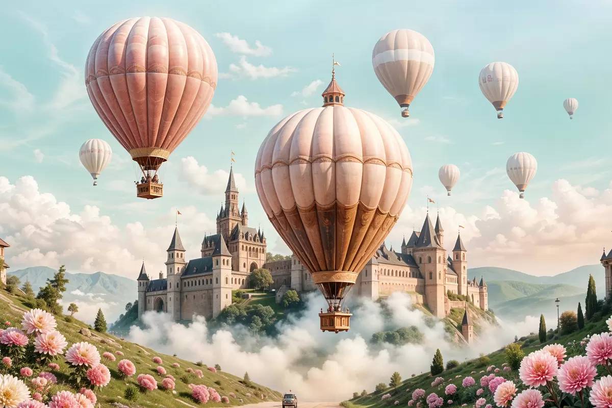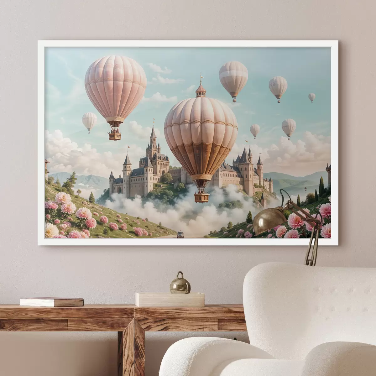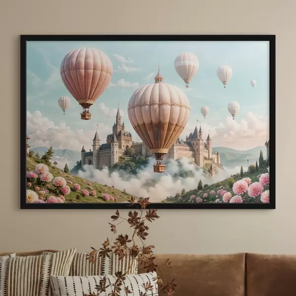SākumlapaPlakātu katalogsPlakāti ziediPlakāts Fantāzijas pils, ko ieskauj rozā gaisa baloni, kas peld mākoņainās debesīs virs sulīgas, zaļas ainavas Nr f39387