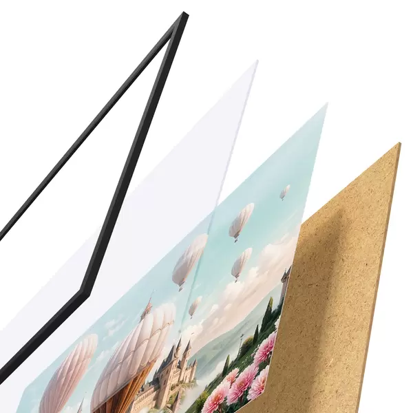 Plakāts sastāv no rāmja, pleksstikla, iespiestā attēla un skaidu plātnes pamatnes. Plakātu var uzreiz piekarināt pie sienas, pateicoties aizmugurē esošajiem stiprinājumiem.