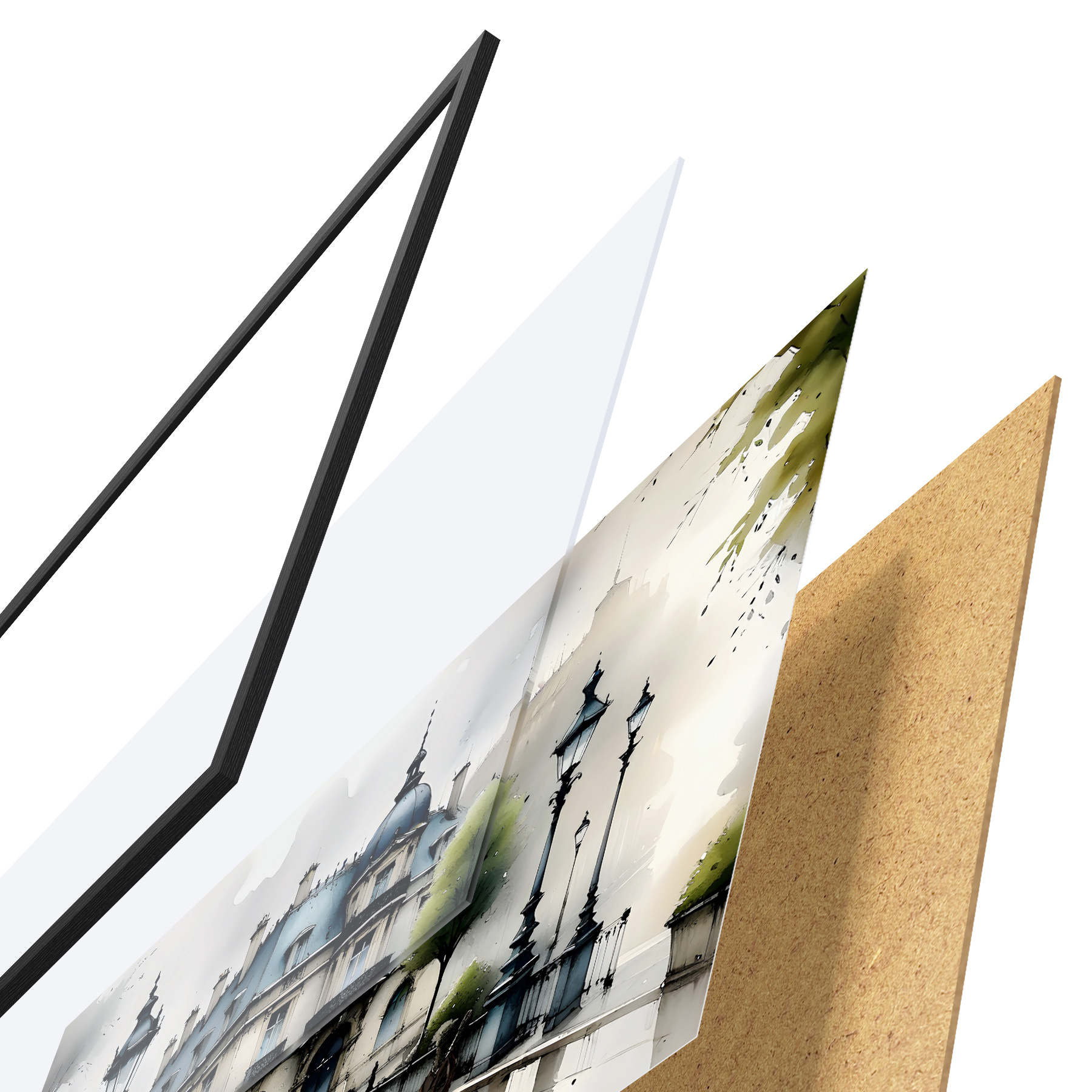 Plakāts sastāv no rāmja, pleksstikla, iespiestā attēla un skaidu plātnes pamatnes. Plakātu var uzreiz piekarināt pie sienas, pateicoties aizmugurē esošajiem stiprinājumiem.
