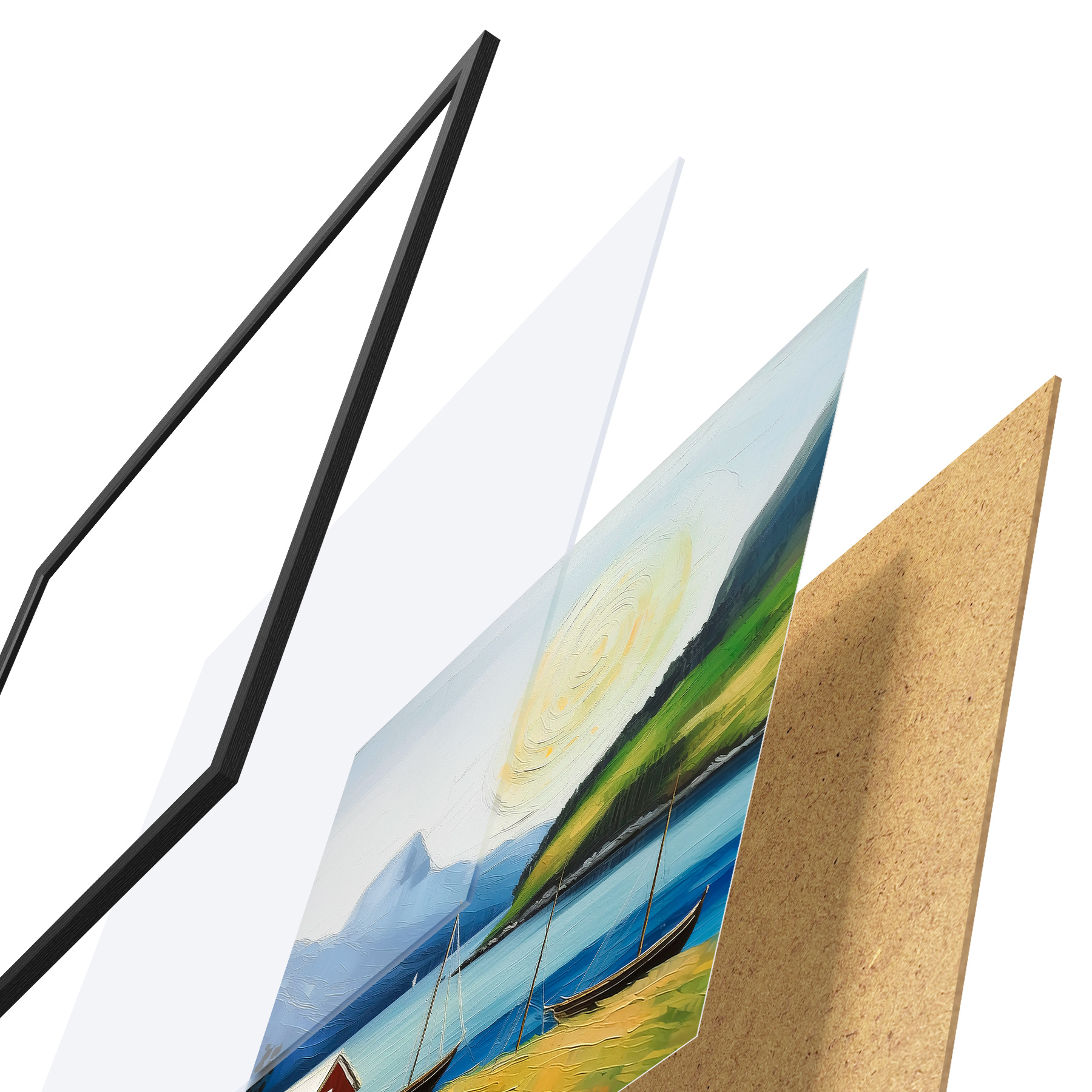 Plakāts sastāv no rāmja, pleksstikla, iespiestā attēla un skaidu plātnes pamatnes. Plakātu var uzreiz piekarināt pie sienas, pateicoties aizmugurē esošajiem stiprinājumiem.