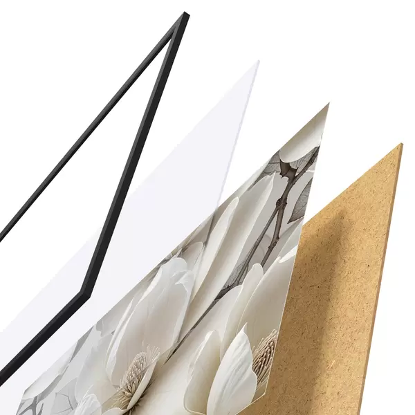 Plakāts sastāv no rāmja, pleksstikla, iespiestā attēla un skaidu plātnes pamatnes. Plakātu var uzreiz piekarināt pie sienas, pateicoties aizmugurē esošajiem stiprinājumiem.