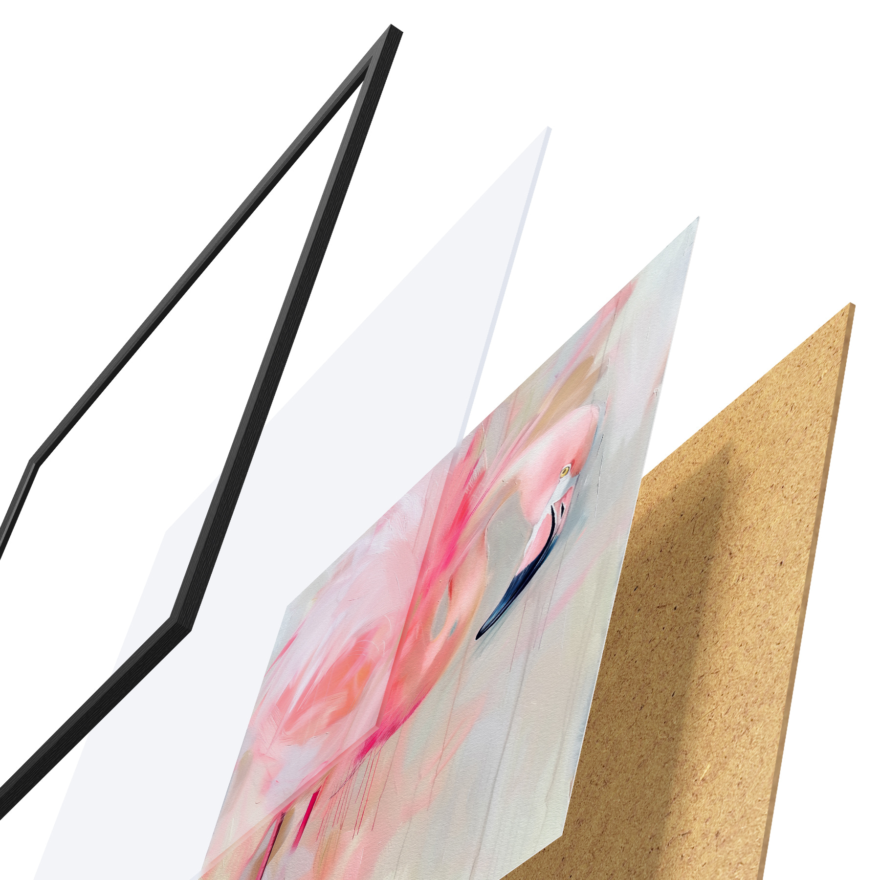 Plakāts sastāv no rāmja, pleksstikla, iespiestā attēla un skaidu plātnes pamatnes. Plakātu var uzreiz piekarināt pie sienas, pateicoties aizmugurē esošajiem stiprinājumiem.