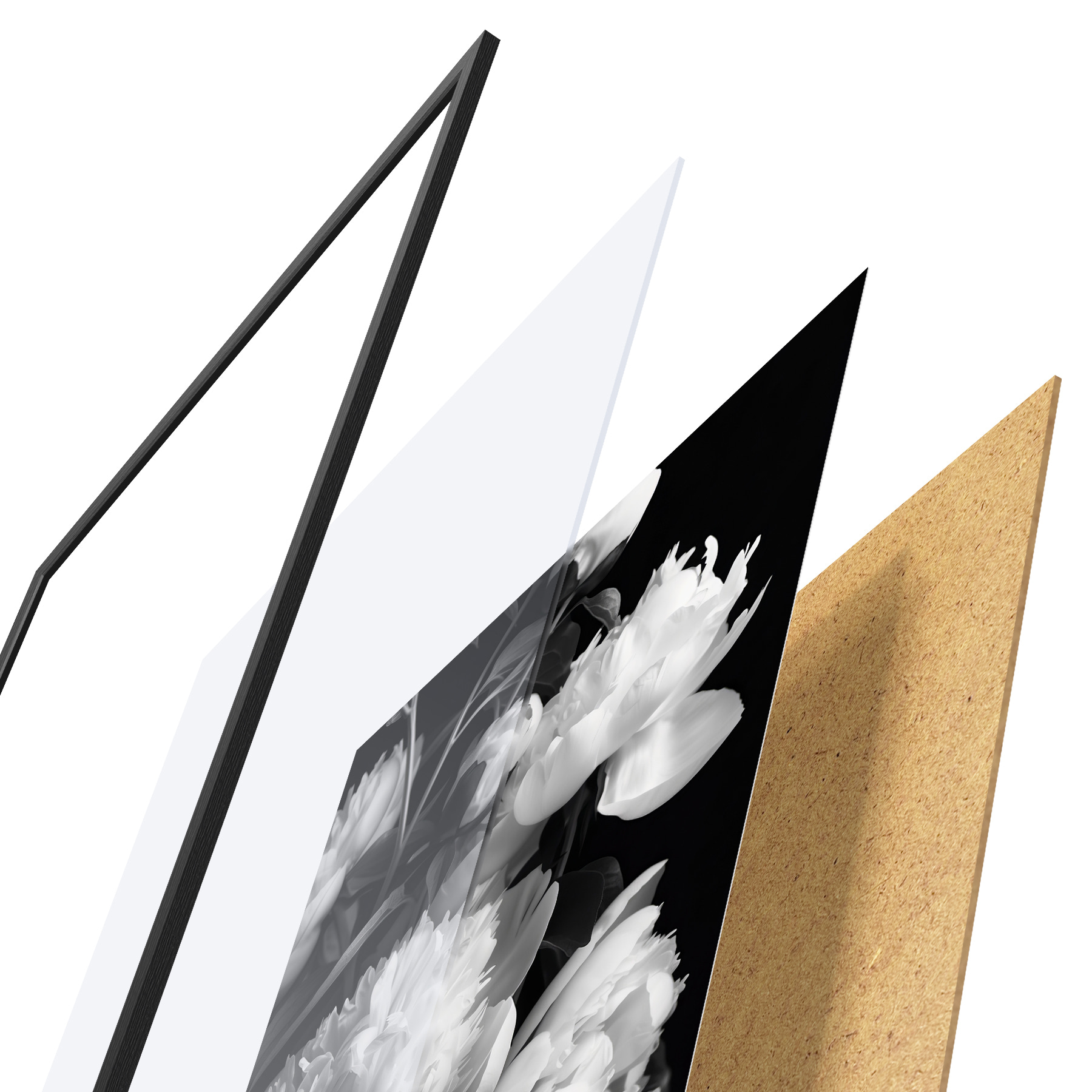 Plakāts sastāv no rāmja, pleksstikla, iespiestā attēla un skaidu plātnes pamatnes. Plakātu var uzreiz piekarināt pie sienas, pateicoties aizmugurē esošajiem stiprinājumiem.