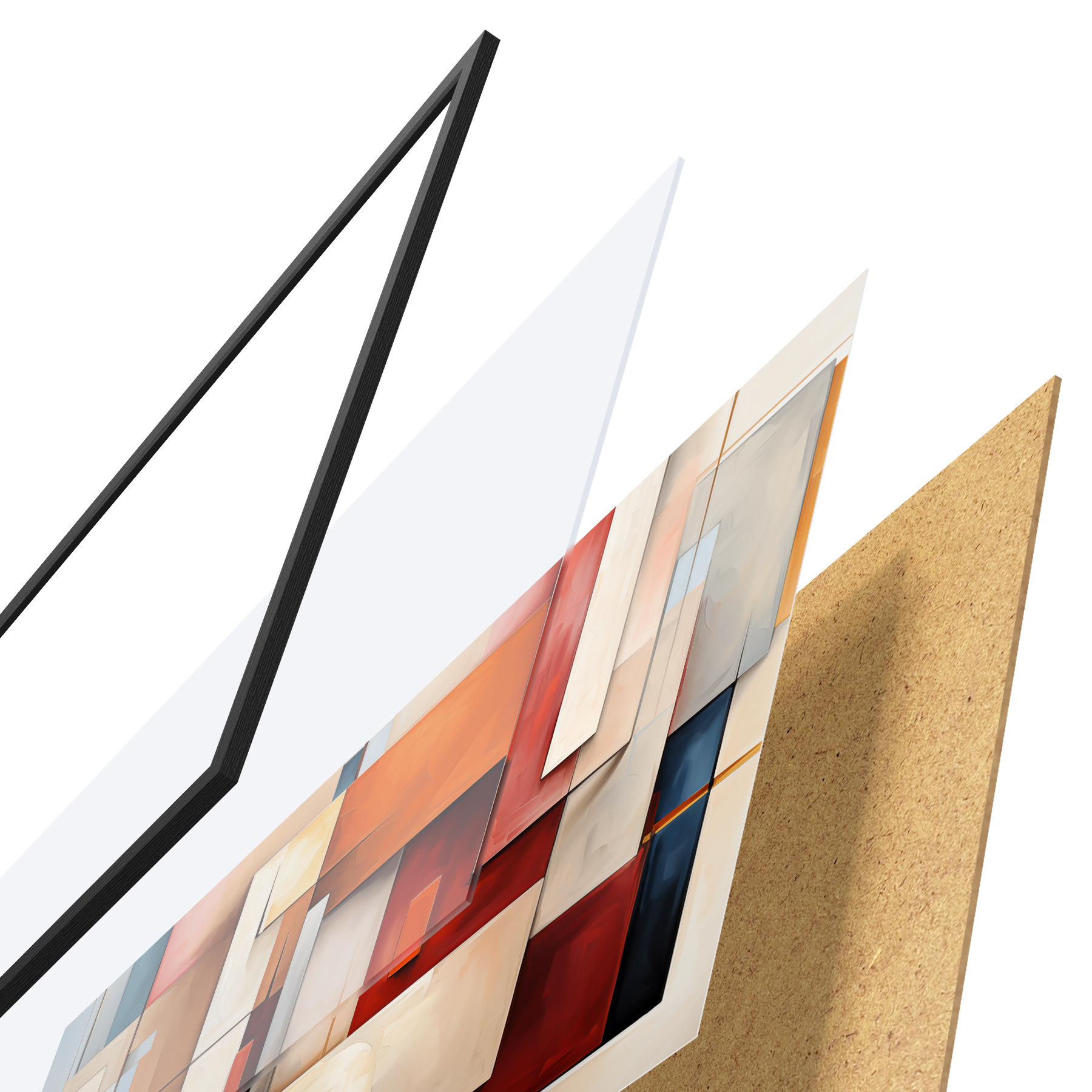 Plakāts sastāv no rāmja, pleksstikla, iespiestā attēla un skaidu plātnes pamatnes. Plakātu var uzreiz piekarināt pie sienas, pateicoties aizmugurē esošajiem stiprinājumiem.