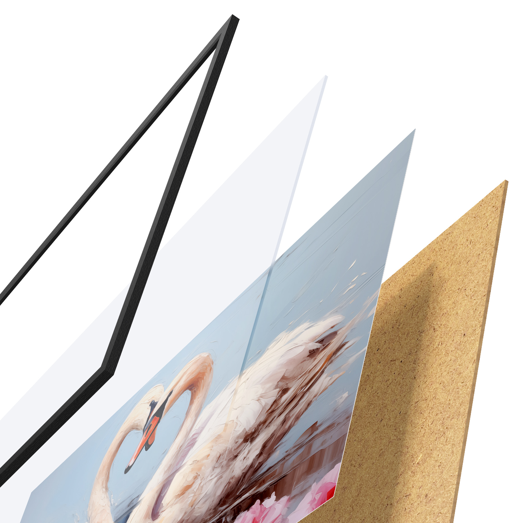 Plakāts sastāv no rāmja, pleksstikla, iespiestā attēla un skaidu plātnes pamatnes. Plakātu var uzreiz piekarināt pie sienas, pateicoties aizmugurē esošajiem stiprinājumiem.