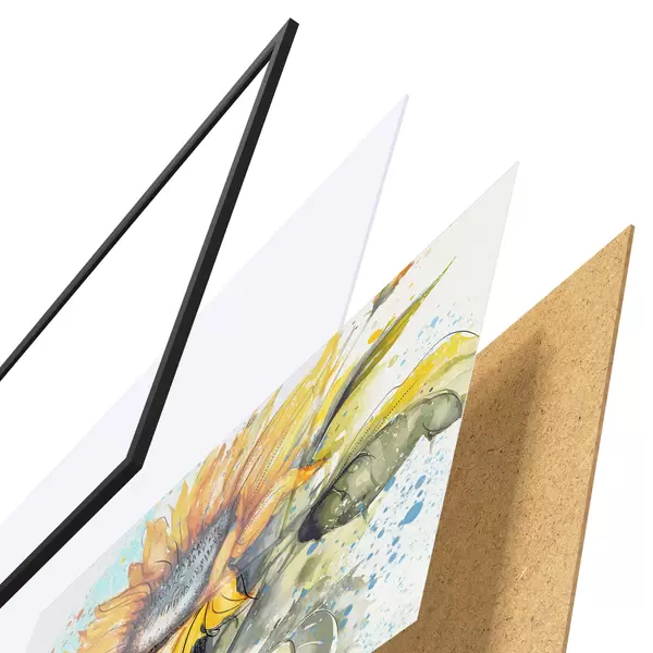 Plakāts sastāv no rāmja, pleksstikla, iespiestā attēla un skaidu plātnes pamatnes. Plakātu var uzreiz piekarināt pie sienas, pateicoties aizmugurē esošajiem stiprinājumiem.