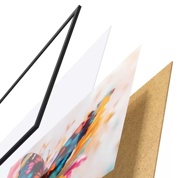 Plakāts sastāv no rāmja, pleksstikla, iespiestā attēla un skaidu plātnes pamatnes. Plakātu var uzreiz piekarināt pie sienas, pateicoties aizmugurē esošajiem stiprinājumiem.