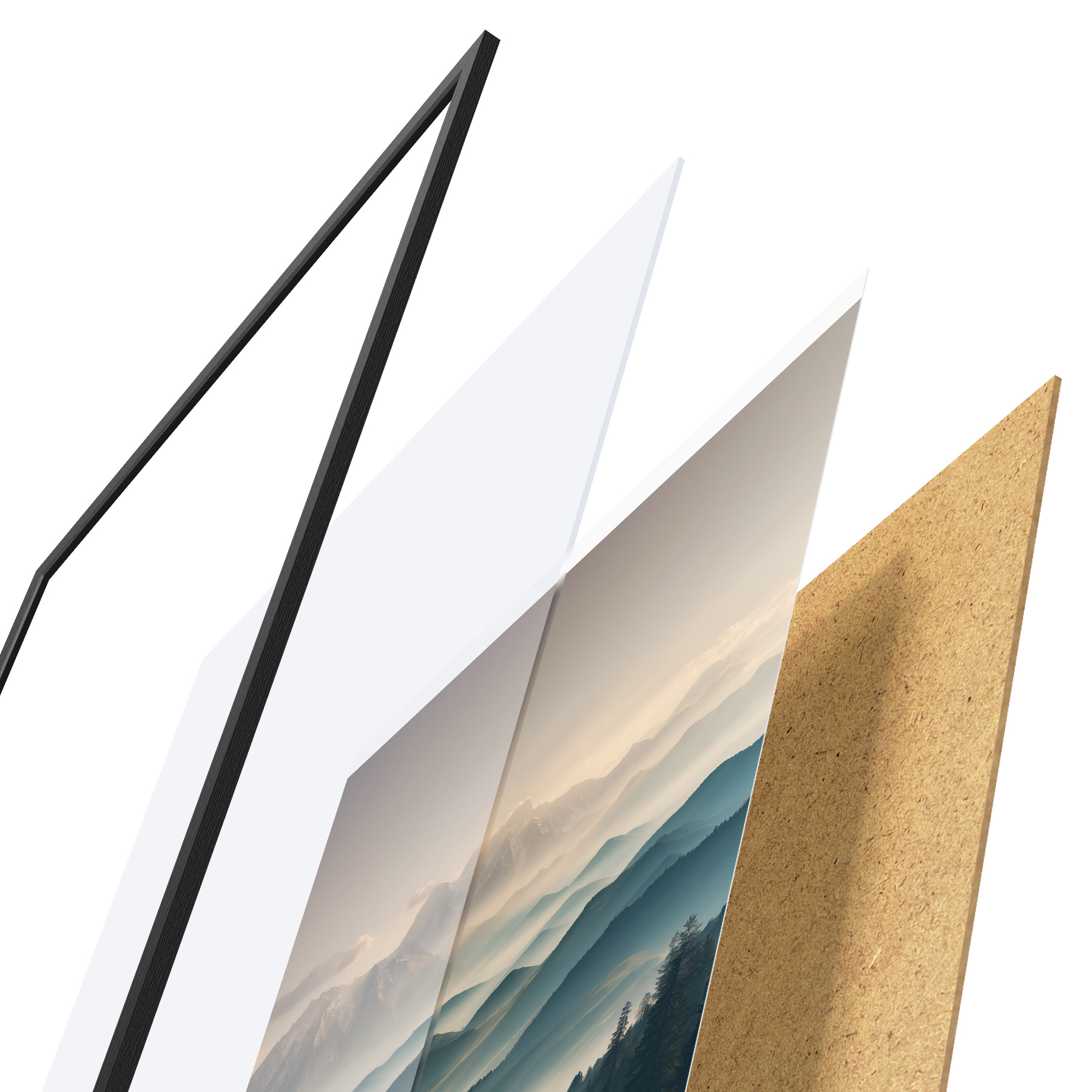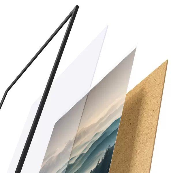 Plakāts sastāv no rāmja, pleksstikla, iespiestā attēla un skaidu plātnes pamatnes. Plakātu var uzreiz piekarināt pie sienas, pateicoties aizmugurē esošajiem stiprinājumiem.