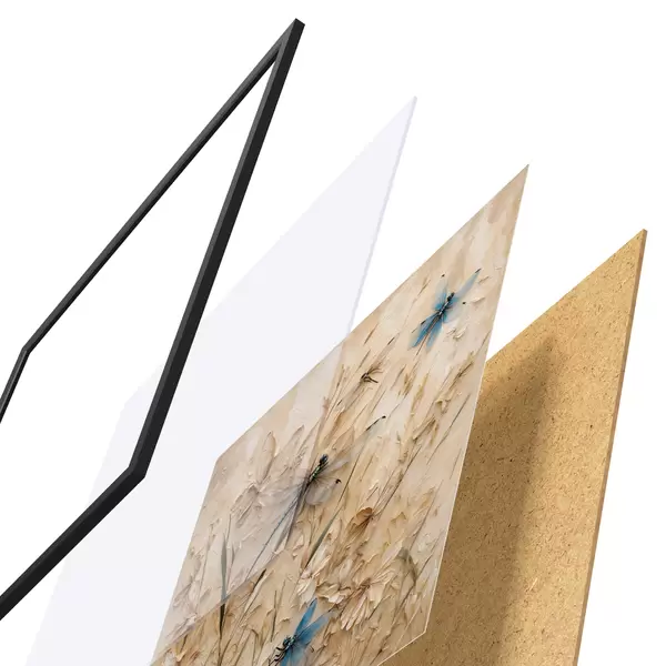 Plakāts sastāv no rāmja, pleksstikla, iespiestā attēla un skaidu plātnes pamatnes. Plakātu var uzreiz piekarināt pie sienas, pateicoties aizmugurē esošajiem stiprinājumiem.
