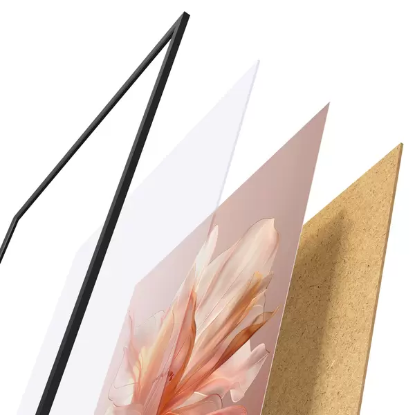 Plakāts sastāv no rāmja, pleksstikla, iespiestā attēla un skaidu plātnes pamatnes. Plakātu var uzreiz piekarināt pie sienas, pateicoties aizmugurē esošajiem stiprinājumiem.