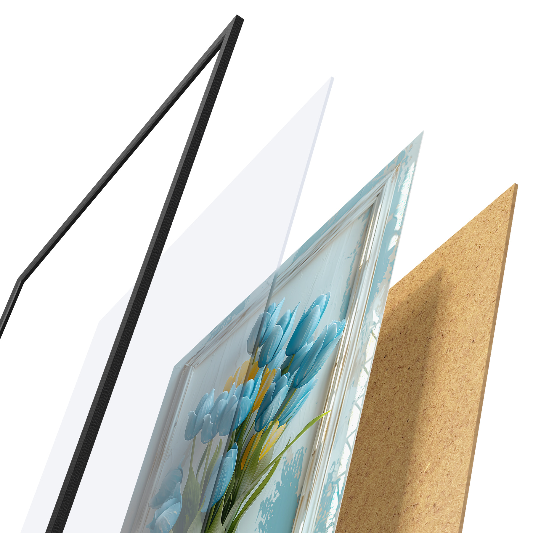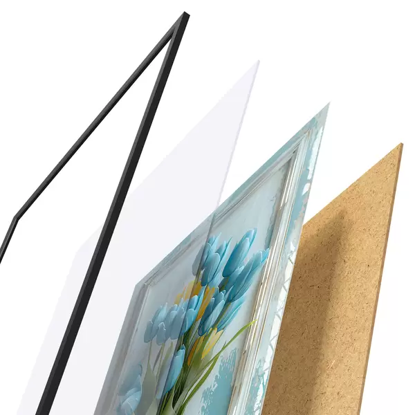 Plakāts sastāv no rāmja, pleksstikla, iespiestā attēla un skaidu plātnes pamatnes. Plakātu var uzreiz piekarināt pie sienas, pateicoties aizmugurē esošajiem stiprinājumiem.
