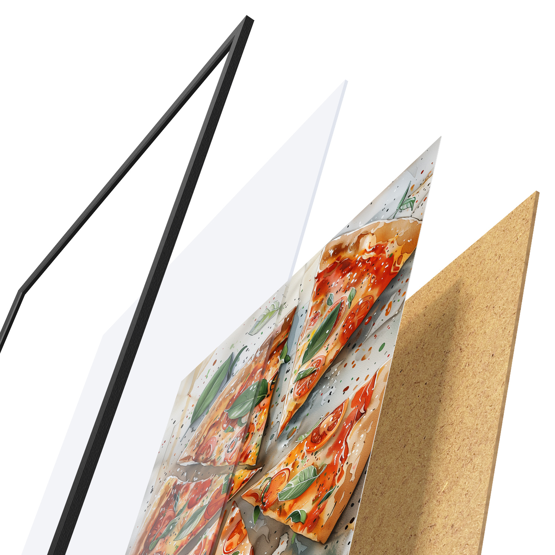 Plakāts sastāv no rāmja, pleksstikla, iespiestā attēla un skaidu plātnes pamatnes. Plakātu var uzreiz piekarināt pie sienas, pateicoties aizmugurē esošajiem stiprinājumiem.