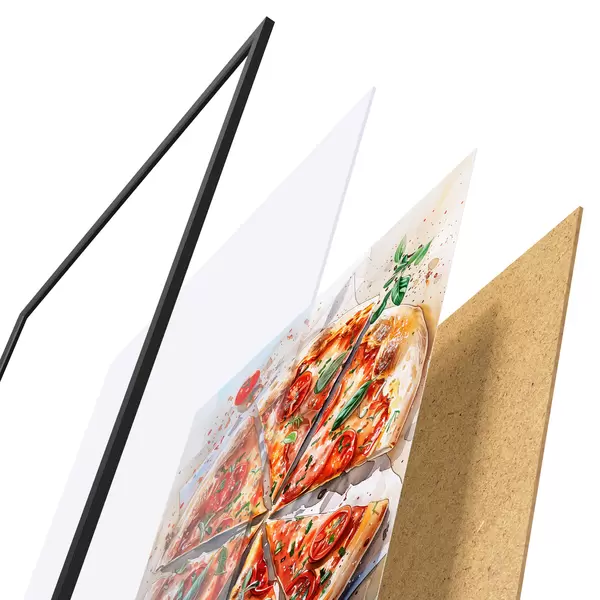 Plakāts sastāv no rāmja, pleksstikla, iespiestā attēla un skaidu plātnes pamatnes. Plakātu var uzreiz piekarināt pie sienas, pateicoties aizmugurē esošajiem stiprinājumiem.