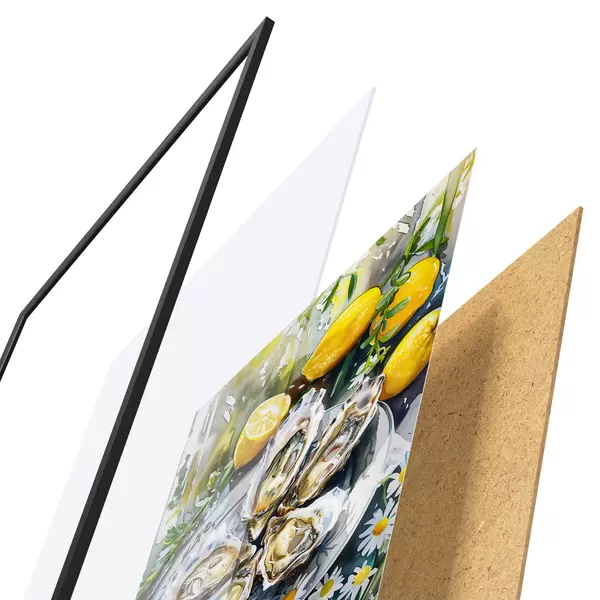 Plakāts sastāv no rāmja, pleksstikla, iespiestā attēla un skaidu plātnes pamatnes. Plakātu var uzreiz piekarināt pie sienas, pateicoties aizmugurē esošajiem stiprinājumiem.