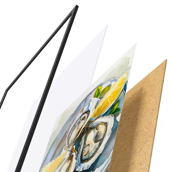 Plakāts sastāv no rāmja, pleksstikla, iespiestā attēla un skaidu plātnes pamatnes. Plakātu var uzreiz piekarināt pie sienas, pateicoties aizmugurē esošajiem stiprinājumiem.