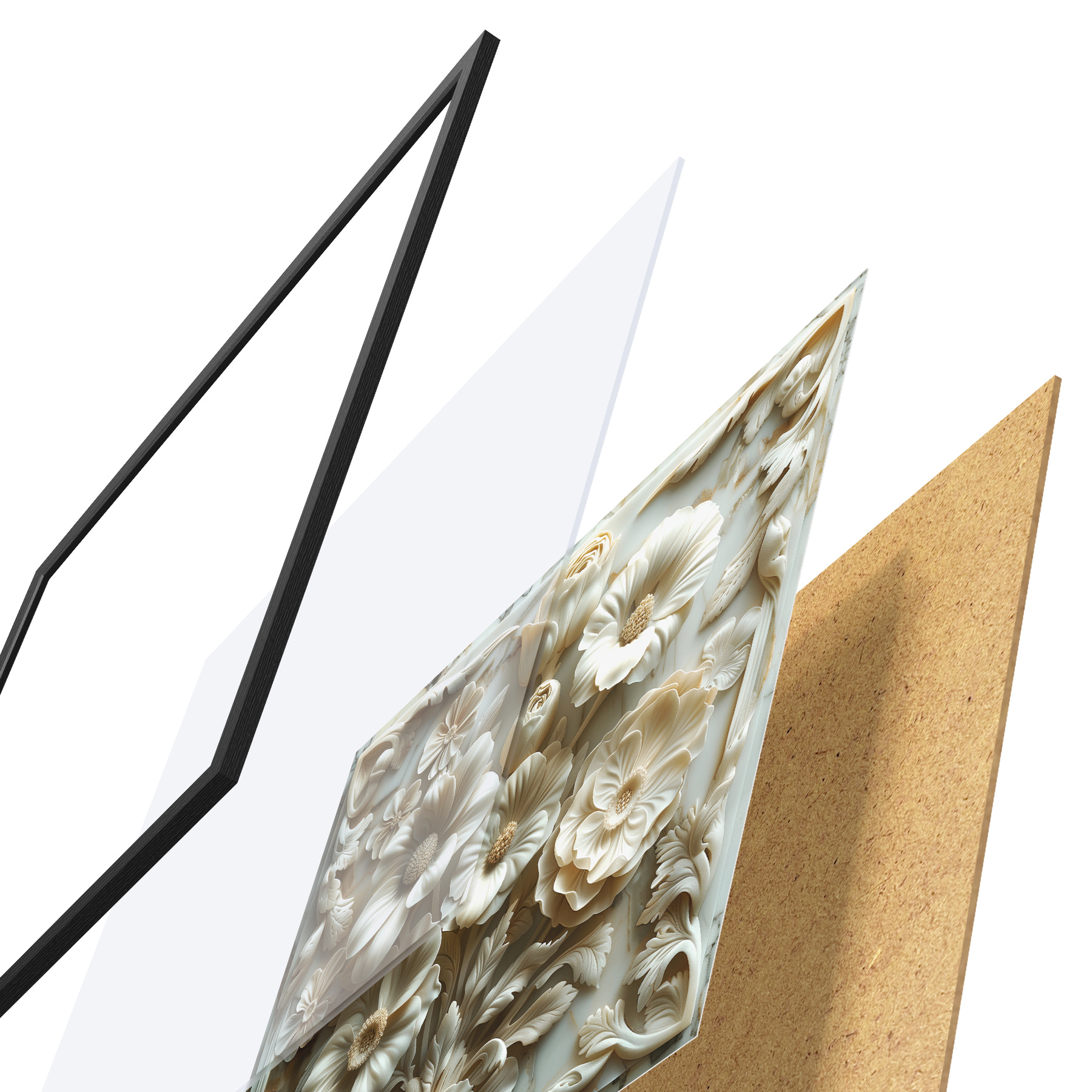 Plakāts sastāv no rāmja, pleksstikla, iespiestā attēla un skaidu plātnes pamatnes. Plakātu var uzreiz piekarināt pie sienas, pateicoties aizmugurē esošajiem stiprinājumiem.