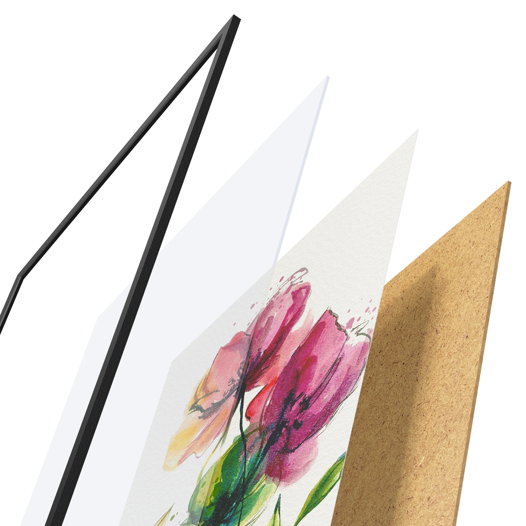 Plakāts sastāv no rāmja, pleksstikla, iespiestā attēla un skaidu plātnes pamatnes. Plakātu var uzreiz piekarināt pie sienas, pateicoties aizmugurē esošajiem stiprinājumiem.