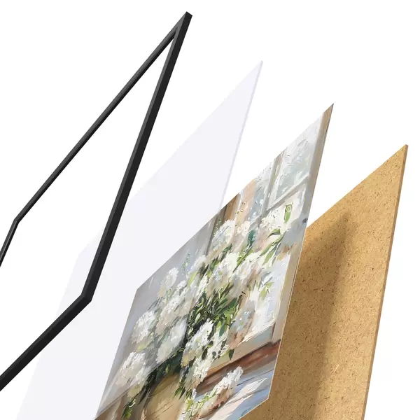 Plakāts sastāv no rāmja, pleksstikla, iespiestā attēla un skaidu plātnes pamatnes. Plakātu var uzreiz piekarināt pie sienas, pateicoties aizmugurē esošajiem stiprinājumiem.