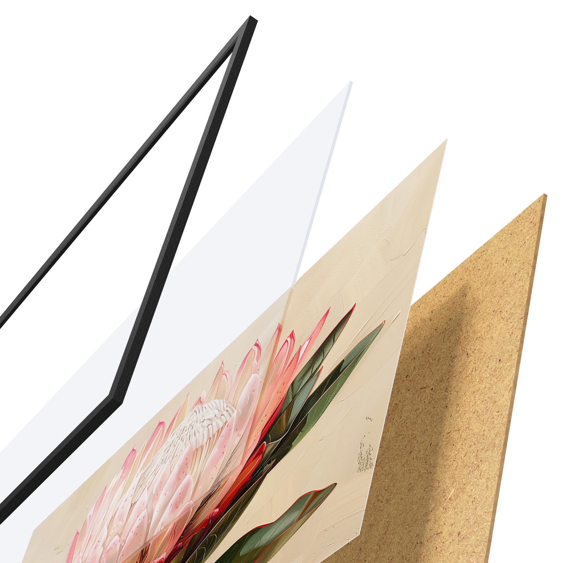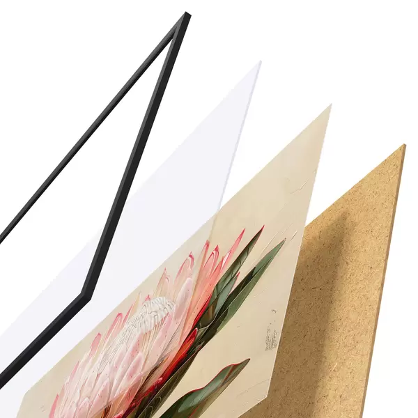 Plakāts sastāv no rāmja, pleksstikla, iespiestā attēla un skaidu plātnes pamatnes. Plakātu var uzreiz piekarināt pie sienas, pateicoties aizmugurē esošajiem stiprinājumiem.