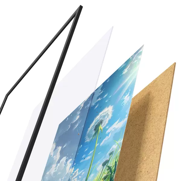 Plakāts sastāv no rāmja, pleksstikla, iespiestā attēla un skaidu plātnes pamatnes. Plakātu var uzreiz piekarināt pie sienas, pateicoties aizmugurē esošajiem stiprinājumiem.