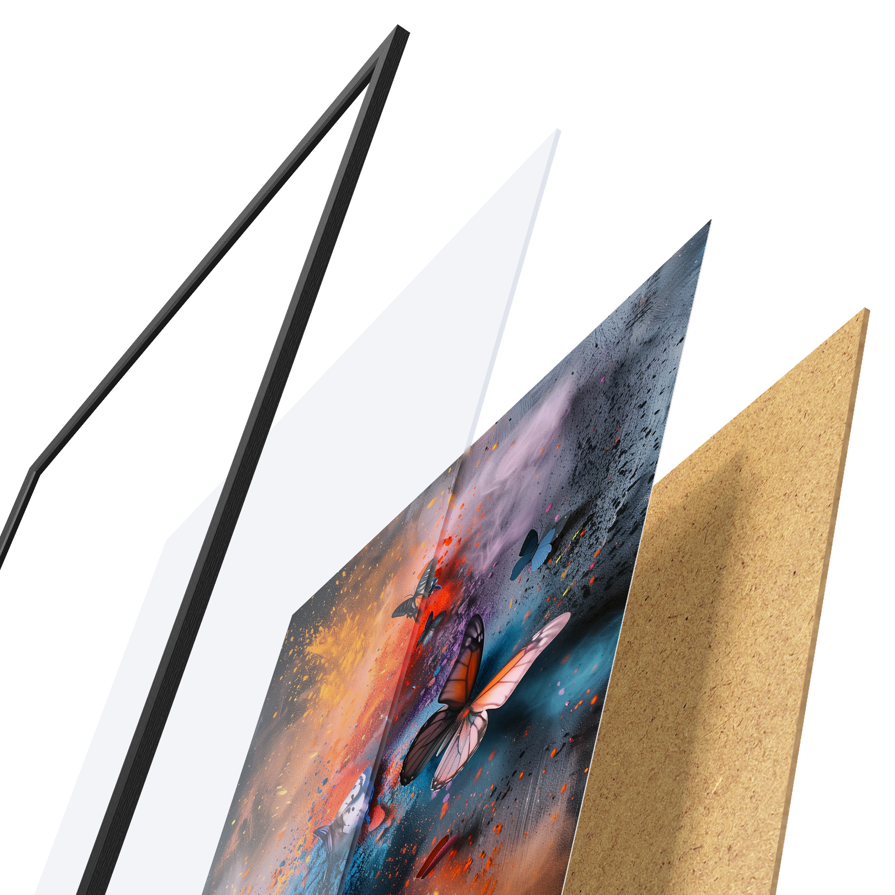 Plakāts sastāv no rāmja, pleksstikla, iespiestā attēla un skaidu plātnes pamatnes. Plakātu var uzreiz piekarināt pie sienas, pateicoties aizmugurē esošajiem stiprinājumiem.
