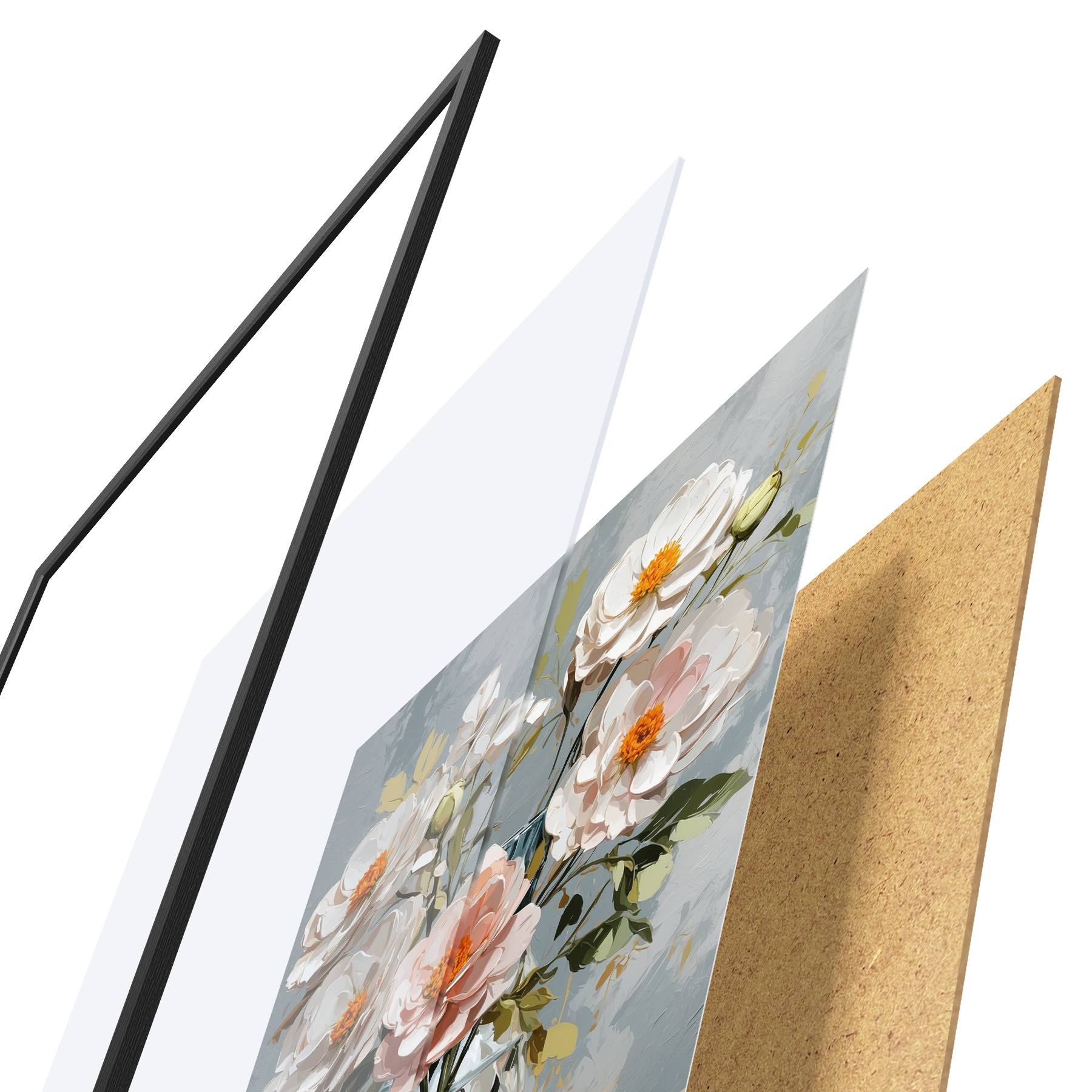 Plakāts sastāv no rāmja, pleksstikla, iespiestā attēla un skaidu plātnes pamatnes. Plakātu var uzreiz piekarināt pie sienas, pateicoties aizmugurē esošajiem stiprinājumiem.