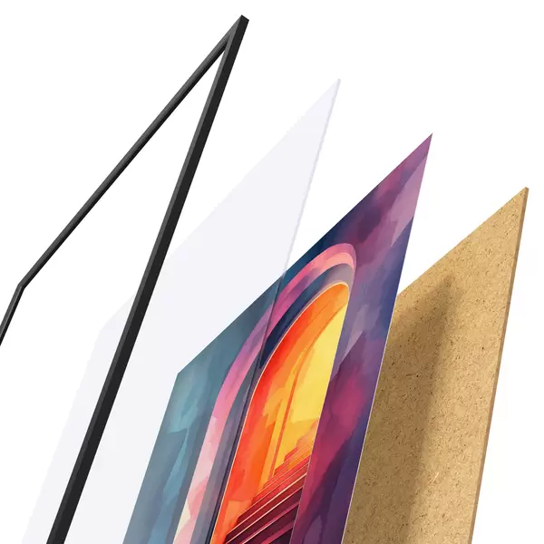 Plakāts sastāv no rāmja, pleksstikla, iespiestā attēla un skaidu plātnes pamatnes. Plakātu var uzreiz piekarināt pie sienas, pateicoties aizmugurē esošajiem stiprinājumiem.